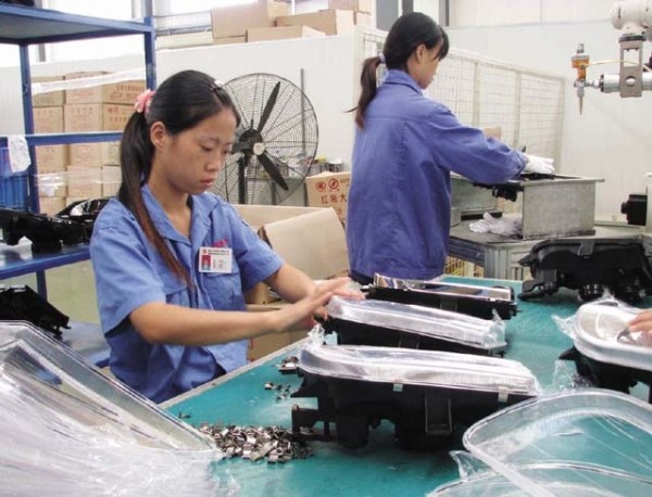 湖北华龙车灯有限公司主动对接大武汉,与东风汽车公司、神龙汽车公司等大型整车厂配套生产各种车灯,发展迅速,今年产值可望突破亿元大关。图为公司车间一角。