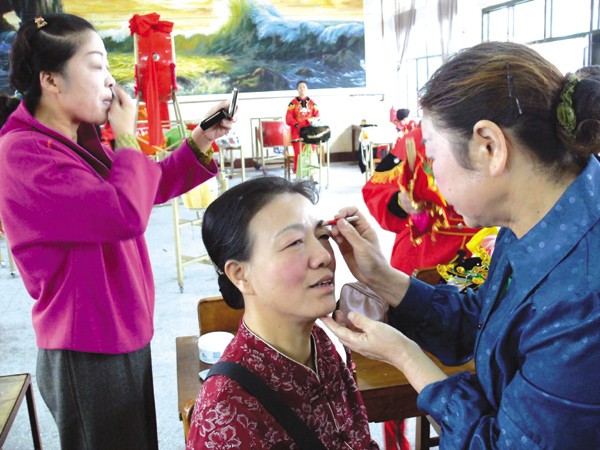 曾都区老年大学常年活跃着一支老年舞蹈队,每逢佳节盛事,老年朋友们都会精心组织,用自己的文艺表演,讴歌党的丰功伟绩。左图:每场演出前,老年朋友都会认真化妆、精心准备。下图:演出现场老年朋友精神饱满、热情高涨。(本报记者孙洪涛通讯员刘金伟摄)