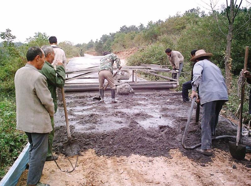 秋收刚过,曾都区殷店镇容河村党支部书记王小兵便组织村民义务修建通组公路,受到群众的好评。图为村民正在利用晴好天气施工。 (陈 琰摄)