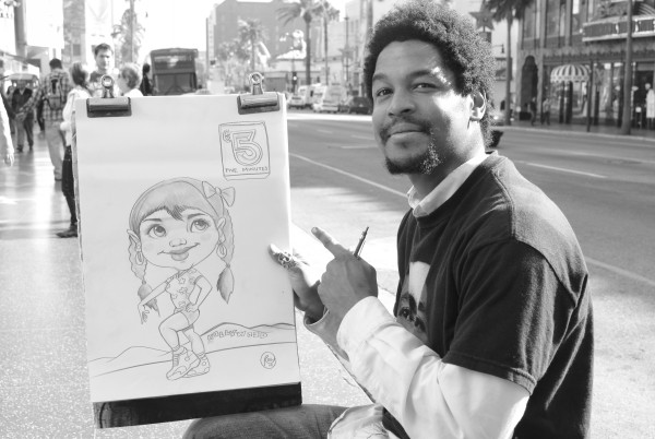 ◆或许是悠哉游哉,或许是乐于张扬,美国人到大街上演奏,也有美国人到街边画速写。这是洛杉矶“影星大道”上的黑人画家。
