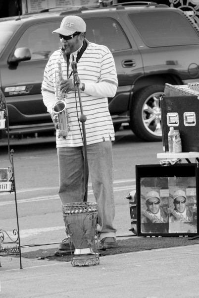 ◆走在美国的大街上,你常常可以看到一些街头演奏家。旧金山街头,这位先生正有滋有味地演奏。