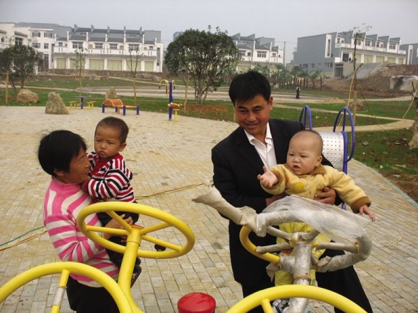 日前,曾都区三里岗镇吉祥村的新居前,村民们愉快地玩着新建的健身器材。依靠种香菇致富的吉祥村,已有五十四户搬进了新建的小洋楼。(本报记者杨闻名摄)
