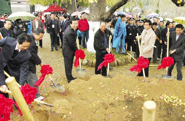 省、市领导挥揪铲土为银杏谷景区建设奠基。 (本报记者 孙洪涛摄)