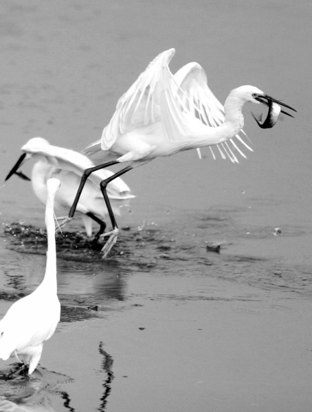 十一月七日,几只候鸟在秦皇岛沿海湿地觅食。被国际湿地保护组织命名的“