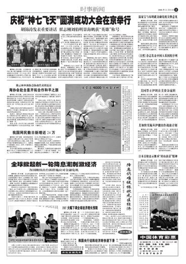 新华社11月7日电 太空漫步神州庆,载人航天谱新篇。中共中央、国务院和中央军委7日上午在人民大会堂隆重举行庆祝神舟七号载人航天飞行圆满成功大会。中共中央总书记、国家主席、中央军委主席胡锦