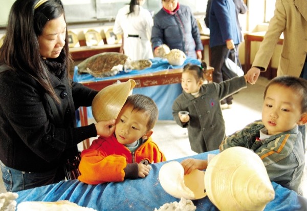 11月8日至10日,青岛海底世界在随州举行海洋生物标本展览,许多家长带着孩子前往参观。(本报记者 李文军摄)