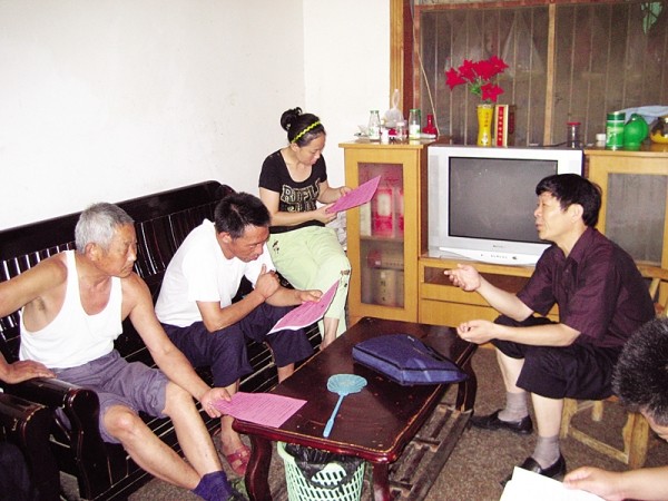 广水市农村社会养老保险工作人员进村入户宣传农村养老保险政策