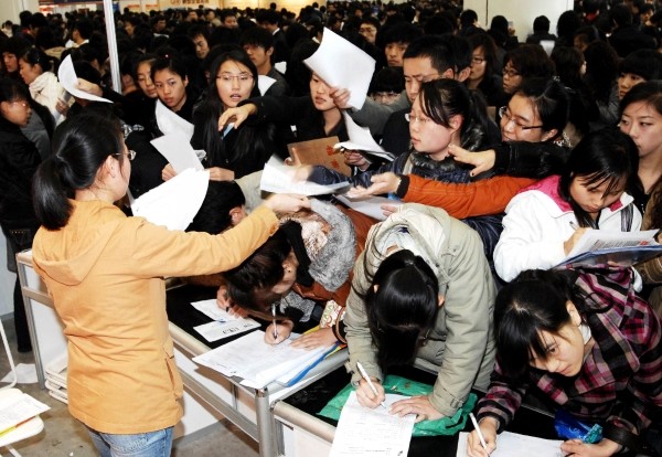 人力资源社会保障部副部长张小建20日说,明年大学生毕业人数达610万,今年底到明年的大学生就业面临着一个比以前更加趋紧的形势。据介绍,大学生就业形势趋紧有四个原因,一是毕业生多。二是就业空间相对紧。三是相关的政策措施和服务体系还亟待完善。四是大学教育与市场脱节。图为应聘者在大连人才招聘会上踊跃报名。 (新华社发)