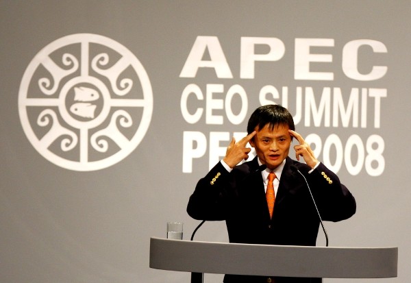 11月21日,在秘鲁首都利马,阿里巴巴集团董事局主席马云在亚太经合组织(APEC)工商领导人峰会上发表演讲。会议将围绕世界经济形势和应对金融危机等议题进行讨论。 (新华社发)