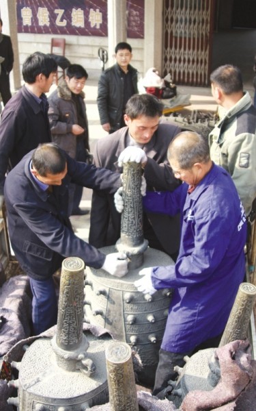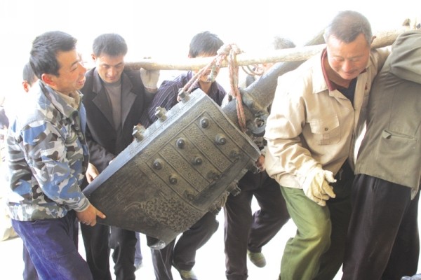 搬运编钟,每一个动作都要谨慎、仔细