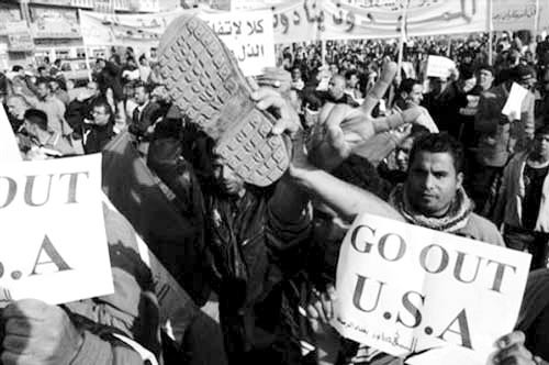 巴格达数千民众16日举行示威游行,声援向布什扔鞋子的伊拉克记者扎伊迪的“义举”。一名伊拉克律师表示,如果扎伊迪因为侮辱一位到访的国家元首而被检控的话,可能最少被判监两年。 (新华社发)