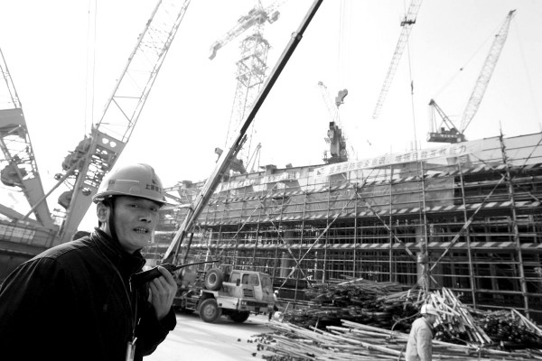 2010年上海世博会17日进入倒计时500天,目前世博园区内的建设已开始全面提速,已经有228个国家和国际组织确认参展。按照规划,中国馆将在2009年9月底完成整体建设,2010年4月完成布展开始试运行。外国馆建设也在全面加速,所有场馆都将在2009年底全部完成。图为建筑工人在吊装世博会演艺中心钢架结构。 (新华社发)