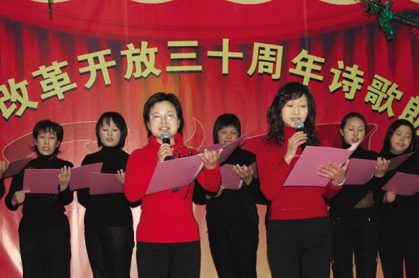 12月25日晚,一场主题为“我与改革同行”的诗歌朗诵比赛,将曾都区实验小学纪念改革开放30周年的系列活动推向高潮。该校通过展览、参观、座谈、征文、诗朗诵等丰富多彩的形式,回顾改革开放30周年的伟大成就,进一步激发了全体教职工投身教育教学改革的热情。 (本报记者 张顺摄)