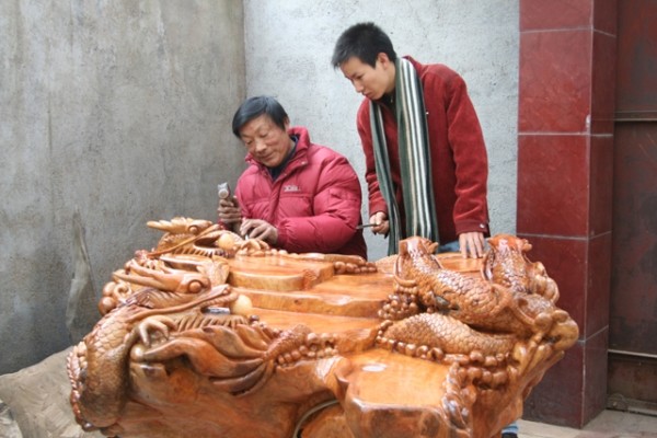 1月2日,我市工艺美术大师徐向新历时半年雕刻的茶海“四龙戏珠”完工。此前,徐向新雕刻的“二龙戏珠”茶海在第三届湖北省工艺美术大师比赛中获奖。 (徐军国摄)