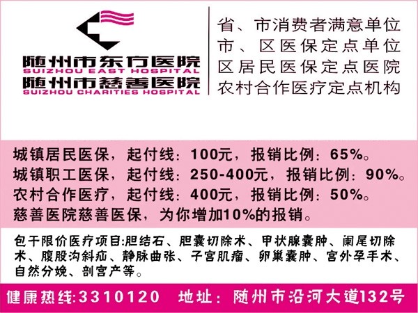 地 址:随州市中医院新门诊二楼、市内乘12、13路公汽到中医院站下车即到(节假日不休)