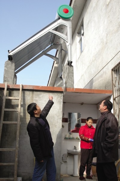 左图:楼上装上太阳能,厨房用上沼气。曾都区厉山镇灯塔村农户的厕所、洗浴都发生了变化。