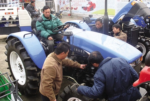 近日,在随州城区农机市场,几位农民正在挑选农用拖拉机,为春耕备耕做准备。据了解,眼下国家为拉动内需出台一系列优惠政策,增强了农民们购买农机具的积极性。 (本报记者 杨闻名摄)