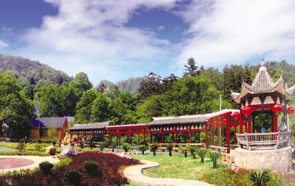 大洪山风景名胜区景点布局引人入胜,旅游设施逐步完善配套,体现出自然与和谐之美。图为景区内新建的长廊、亭阁一瞥。