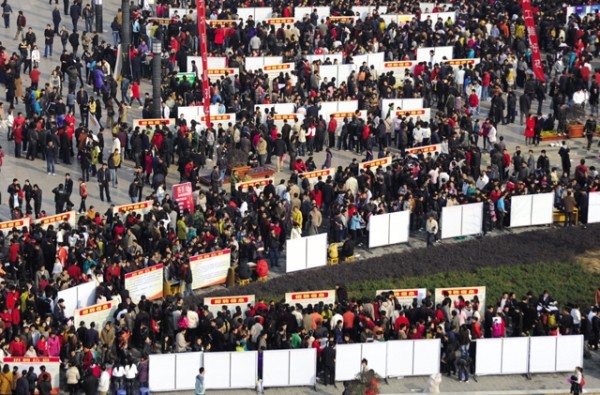 图为“四送”活动启动当日城区明珠广场招聘会现场。 (本报记者 李文军摄)