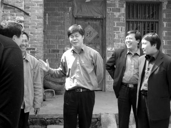 ▲市委常委、副市长彭明方(右三)到农村视察卫生厕所改造。