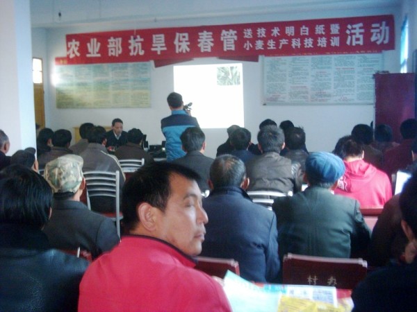 2月14日,农业部抗旱保春管送技术明白纸暨小麦生产技术培训活动专家指导组一行8人,到曾都区尚市镇净明铺村对200余农户进行了技术培训,讲授了小麦春季田管技术,并现场为农户发放了小麦田管技术明白纸。 (徐厚新 摄)