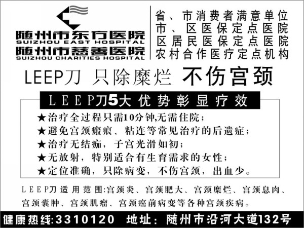 随州市中医院外科开展普外、胸外、泌外、显微外科等各种平、急诊手术,并引进美国史赛克三晶片电视腹腔镜、前列腺电切镜、膀胱镜、大力碎石钳等高、精、尖先进设备开展胆道、肠道、泌尿系多种微创手术,创伤小、恢复快、费用低。