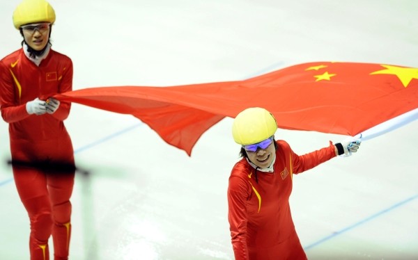 2月23日,中国队选手在赛后庆祝胜利。当日,在第24届世界大学生运动会上,我国健儿已获得11块金牌,为史上最好成绩。 (新华社发)