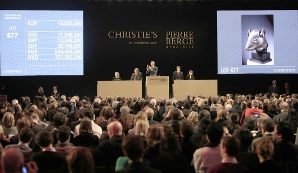 千余名来自世界各地的收藏爱好者出席了当晚的拍卖活动。不过,鼠首和兔首铜像拍卖主要在几名电话竞拍者之间进行。经过几个回合的叫价,两尊兽首最终均被通过电话参与当晚拍卖会的买家拍得。目前,两尊兽首到底被几位买家拍得以及买家身份尚不清楚。