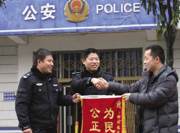 2月25日,荆州一客商来到曾都区柳林镇派出所,感谢柳林镇治安巡逻队和公安民警的救命之恩。1月14日晚,该客商因路况不熟,在柳林镇遭遇车祸受伤,被夜间巡逻的柳林镇治安巡逻队员发现,并得到公安干警和治安巡逻队员的及时抢救。该客商伤愈出院后,即来到柳林镇赠送锦旗表示谢意。