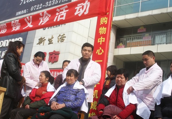 3月5日,城区奔奔按摩中心的盲人按摩师在街头为市民服务。当日,由随州市共青团组织的市直单位青年志愿者在城区义务开展为老百姓排忧解难咨询服务等活动,深受欢迎。