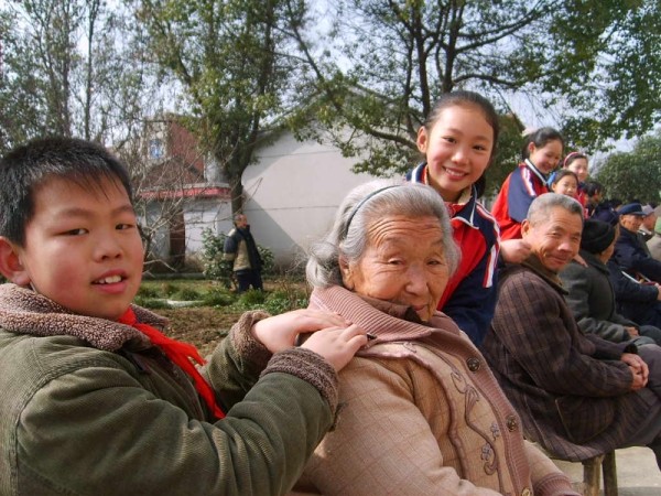 3月5日上午,曾都区环潭镇小学学生彭红(右一)、张风(左一)来到镇中心福利院,与结对的老人彭奶奶按摩,和她亲切聊天。当日,小学生们还为老人们带来了精彩的文艺表演,让老人们笑开怀。