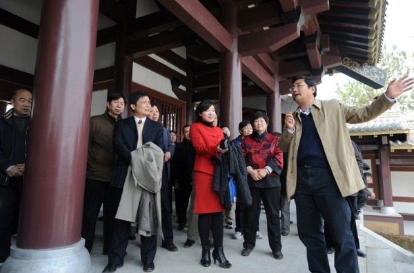 右图:为了加深游客对炎帝神农故里的印象和了解,有时候景区党工委书记刘光辉也临时客串一下导游员,给游客讲解神农功绩和典故。