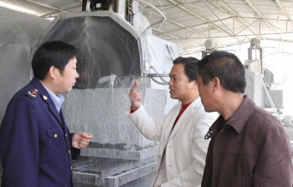 3月15日,位于曾都区吴山镇的福磊石业公司机器轰鸣,生产一片繁忙。图为吴山工商所的干部来到该公司,向企业经营者了解情况,积极为企业服务,帮助他们解决生产经营中所遇到的问题。