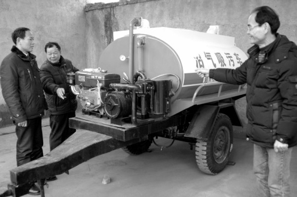 近日,环保型沼气吸污车在随州市伟业专用汽车配件厂研发成功,该车其中三项技术获得国家技术专利。如今,这种环保吸污车已投入批量生产。 (本报记者 陈德友摄)