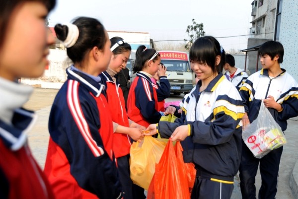 3月16日,曾都区白云双语学校近百名师生到区特殊教育学校,开展“心连心”联谊活动,并赠送了学习用品和自己制作的小礼物。他们虽然无法用语言交流,但是两校同学们一起表演舞蹈、跳绳、习武,玩得非常开心。 (记者 李文军摄)