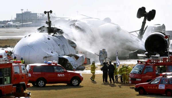 日本广播协会(NHK)电视台播放的事故画面显示,失事飞机在着陆时机头突然下坠撞向跑道,随即飞机向左倾斜,左翼撞地,飞机起火并冲出跑道。
