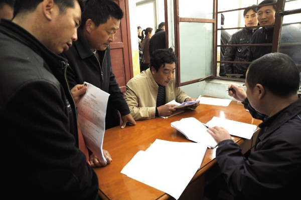 三月二十九日,曾都区享受农机购机补贴的农户正在曾都区农机化办公室办理购机手续。农机化办公室将对享受补贴的农机进行统一编号、建档,并实行办证、办牌等一条龙服务。据了解,我市二OO九年的农机购机补贴工作已正式启动。(本报记者李文军摄通讯员简兵文)