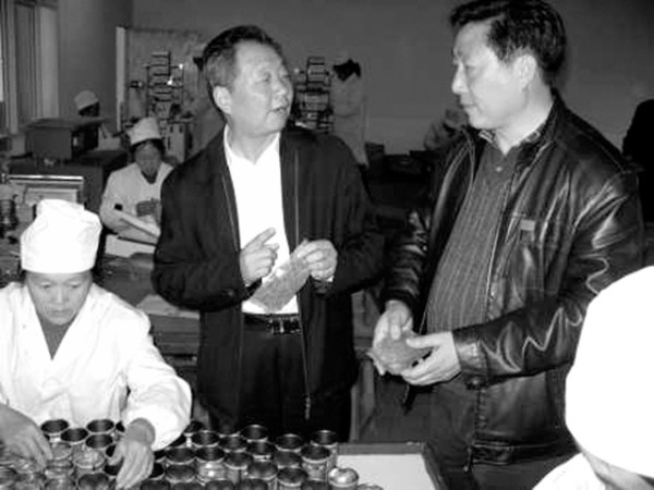 市老促会关注群众致富,经常深入田边地头、企业车间了解新情况,并为他们提供致富信息。近日,市老促会会长吴治炎(右二)一行来到曾都区云峰山茶场调研茶叶生产销售情况,并鼓励茶场创品牌,上质量,为老区人民增收作贡献。(石守京摄)