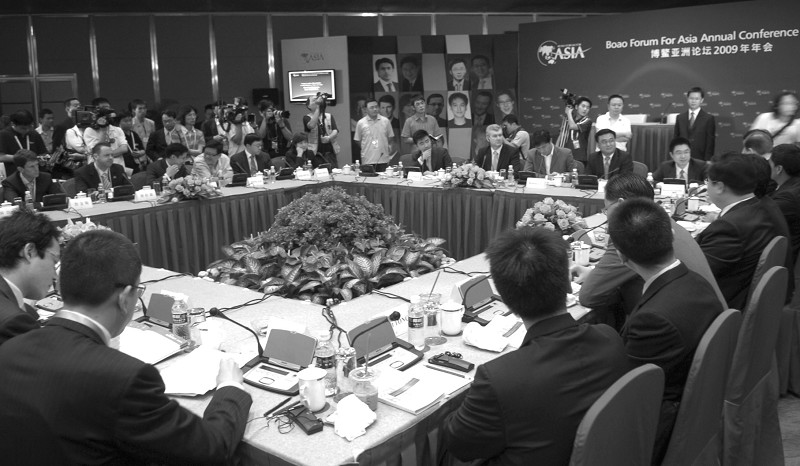 4月17日,博鳌亚洲论坛2009年年会举行青年领袖圆桌会议,此次会议的主题是“危机考验领导力”。 (新华社发)