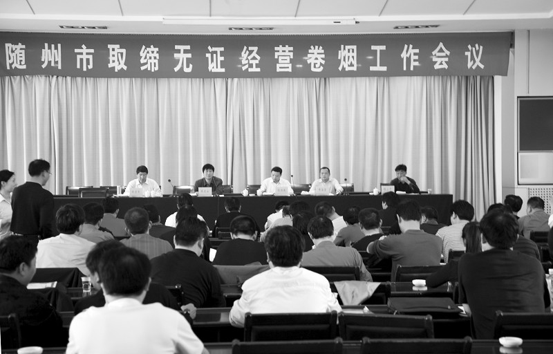 4月15日,全市召开取缔无证经营卷烟工作会议,部署整顿卷烟市场工作。副市长陈传根(左三),市政府副秘书长陈建安(左二),市烟草专卖局局长黄海堂(右二)、副局长陈前军(左一),市工商局纪检组长程小平(右一)等领导参加会议。