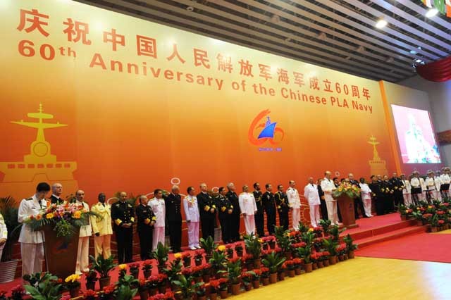 吴胜利首先代表中国海军全体官兵,对世界五大洲前来参加活动的各位海军领导人和各国海军官兵表示诚挚的欢迎和衷心的感谢。他指出,中国海军经过60年的发展,已成为一支多兵种合成、具有核常兼备作战能力的现代海上力量。中国海军坚持把信息化作为现代化建设的发展方向和发展重点,逐步促进远海合作,提高完成多样化任务的能力,推动海军建设整体转型。