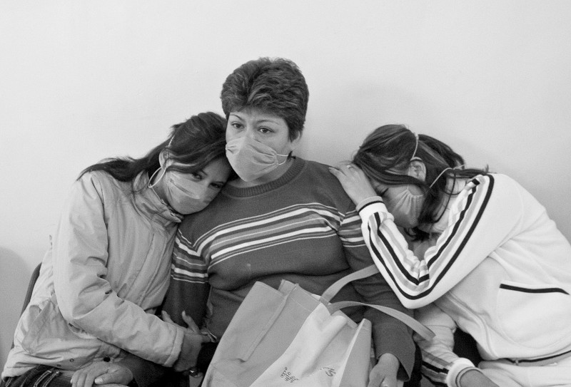 4月24日,在墨西哥首都墨西哥城的一家医院内,市民戴着口罩防止感染流感病毒。近期,墨西哥多个地区发生流感疫情,已造成约20人死亡。墨西哥政府已决定全国中小学校及大学从24日起关闭。 (新华社发)