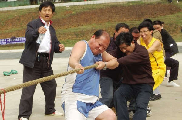 图为教职工正在进行拔河比赛。(本报记者张顺通讯员立健良华摄)