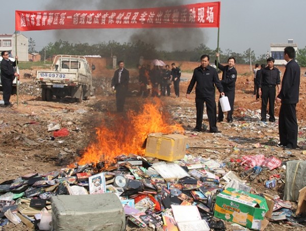 4月28日,市文化、工商、公安等部门联合行动,将收缴的3万余张违法音像制品及非法出版物在城郊处销毁。据了解,今年以来,为打击经营违法音像制品及非法盗版物,我市共出动市场执法人员680人次,检查音像制品经营户102家,收缴淫秽、色情、盗版光碟24000余张,非法出版物8100余册(套)。 (本报记者 杨闻名 通讯员 王成学摄)