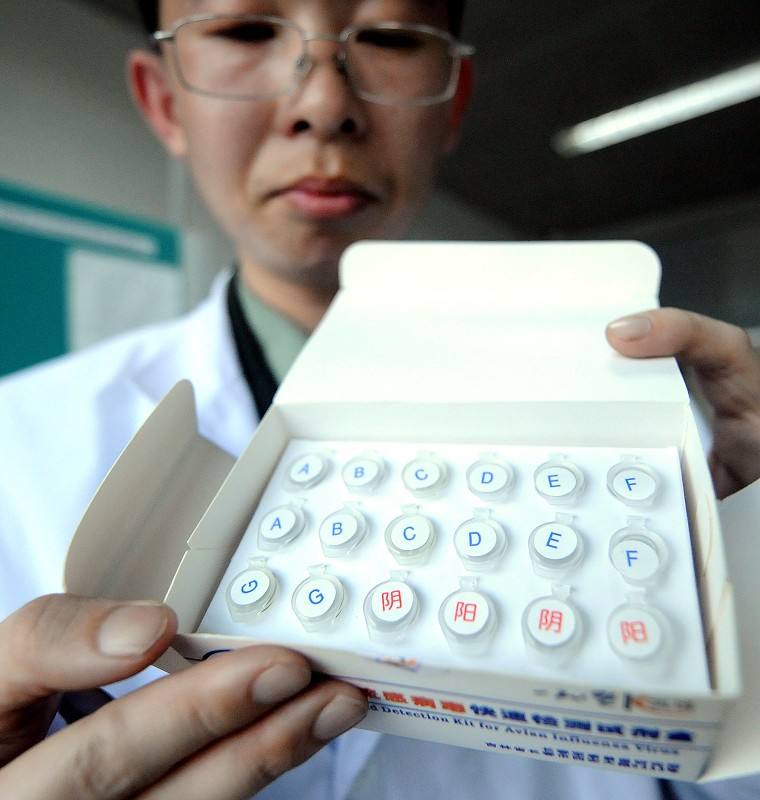 这个研究所自1997年开展流感病毒检测及疫苗相关研究,2004年曾成功研制高致病性禽流感病毒检测试剂盒。甲型H1N1流感病毒暴发后,他们第一时间从国外获得近100条甲型H1N1代表毒株基因序列并进行生物信息学分析,成功研制出检测试剂盒。图为研究人员在展示“流感病毒RT-PCR检测试剂盒”。