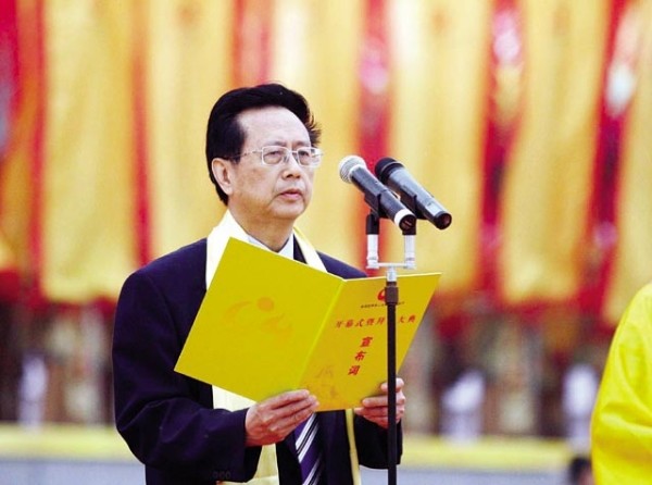 图二:全国人大常委会副委员长陈昌智宣布首届世界华人炎帝故里寻根节开幕。(本报记者 孙洪涛摄)