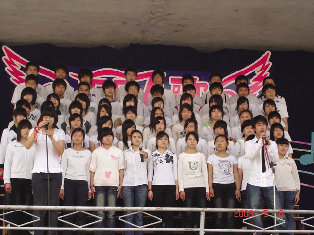 近日,文峰完全中学举行了一场主题为 “五月飞歌”的歌咏比赛,全校20多个学生合唱队和教师合唱团纷纷登台,用嘹亮的歌声歌唱伟大的祖国和幸福的生活。 (谢成武 摄)