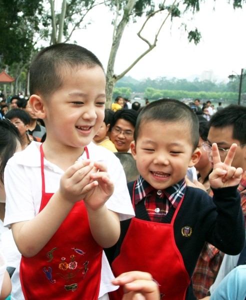图②在福州市西湖公园,小朋友穿上免费领取的红肚兜。制作端午节香囊、包粽子、送肚兜……今年端午节期间,福州市开展 “我们的节日——和谐端午”系列活动。