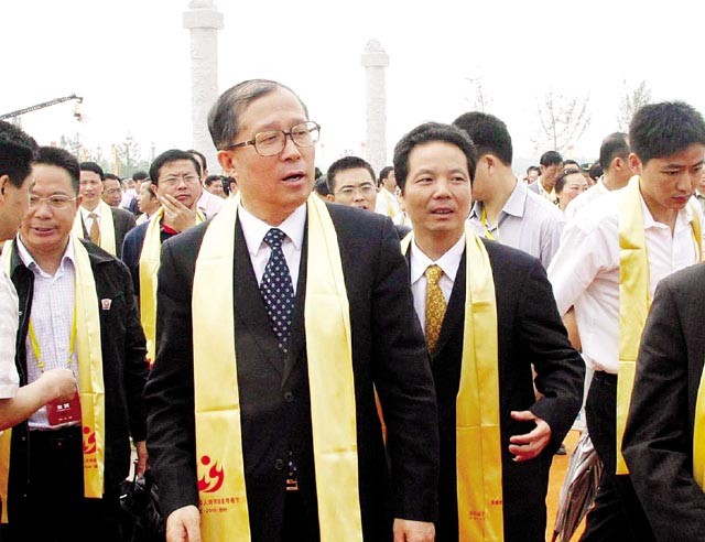 全国人大常委会副委员长陈昌智 (前排右三),全国政协副主席李兆焯 (前排右四),省委书记罗清泉(前排右二),省长李鸿忠(前排左二)等领导步入拜祖大典现场。