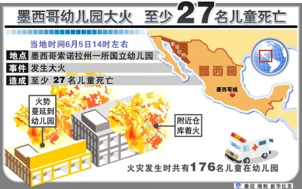 索诺拉州州府埃尔莫西略市政府发言人何塞·拉里纳格说,大火发生在5日下午2时左右。事发后,救援人员立刻赶至现场。目前已发现27具儿童的尸体,随着搜救工作的继续,遇难儿童的人数可能继续上升。